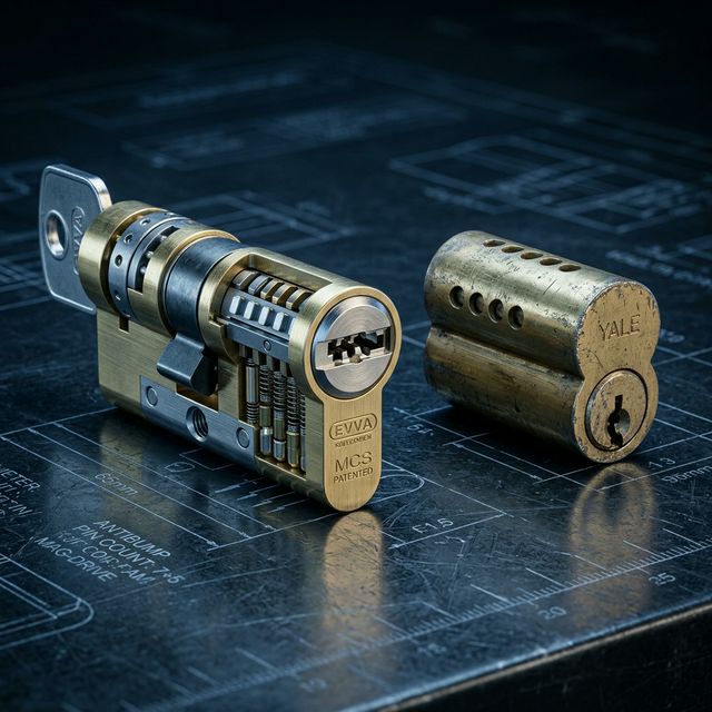 A simple vista, un bombín estándar de ferretería y un cilindro de alta seguridad de grado premium parecen exactamente iguales. Ambos son de latón o níquel, ambos tienen un hueco para introducir la llave, y ambos rotan mecánicamente para accionar el cierre. Sin embargo, el interior de esas piezas de metal esconde diferencias abismales en materia de ingeniería y resistencia a ataques.